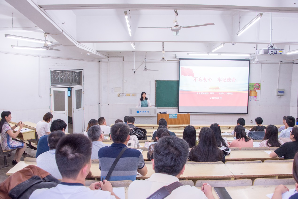 6月19日下午,人文医学性爱电影 党总支书记杨秀兰在12101教室,给全院教师党员主讲“不忘初心、牢记使命”专题党课。