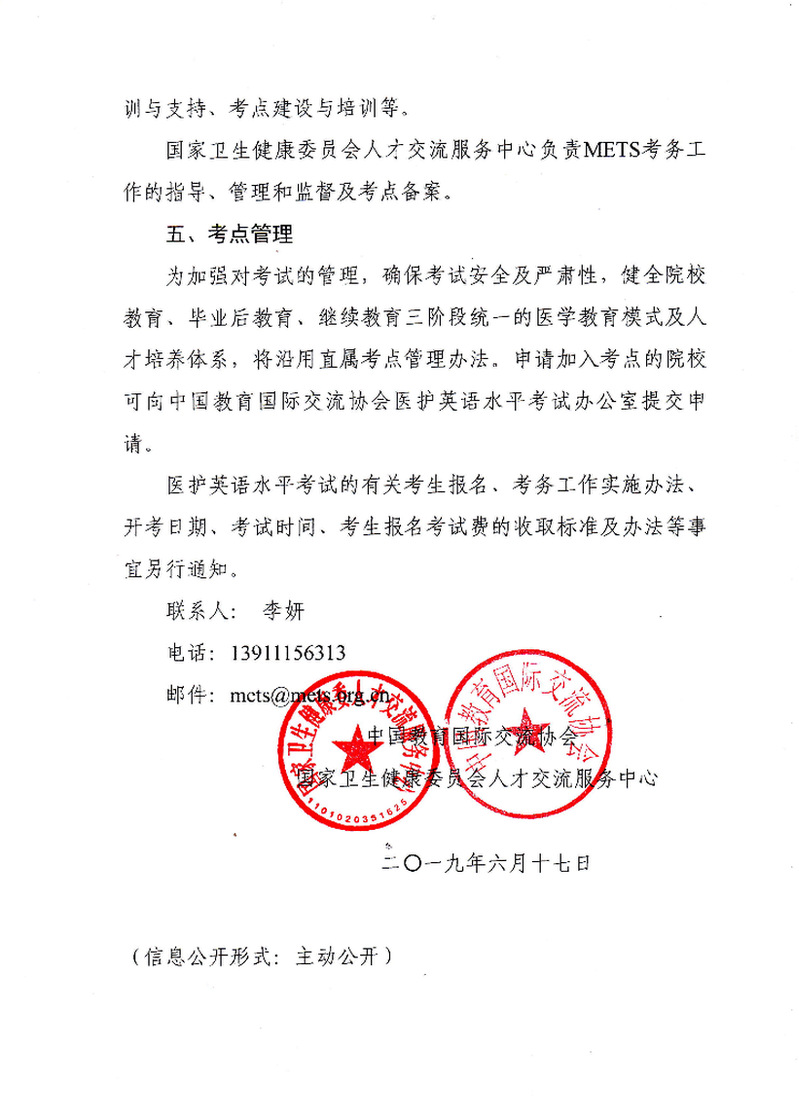 关于医护英语水平考试有关情况变更通知