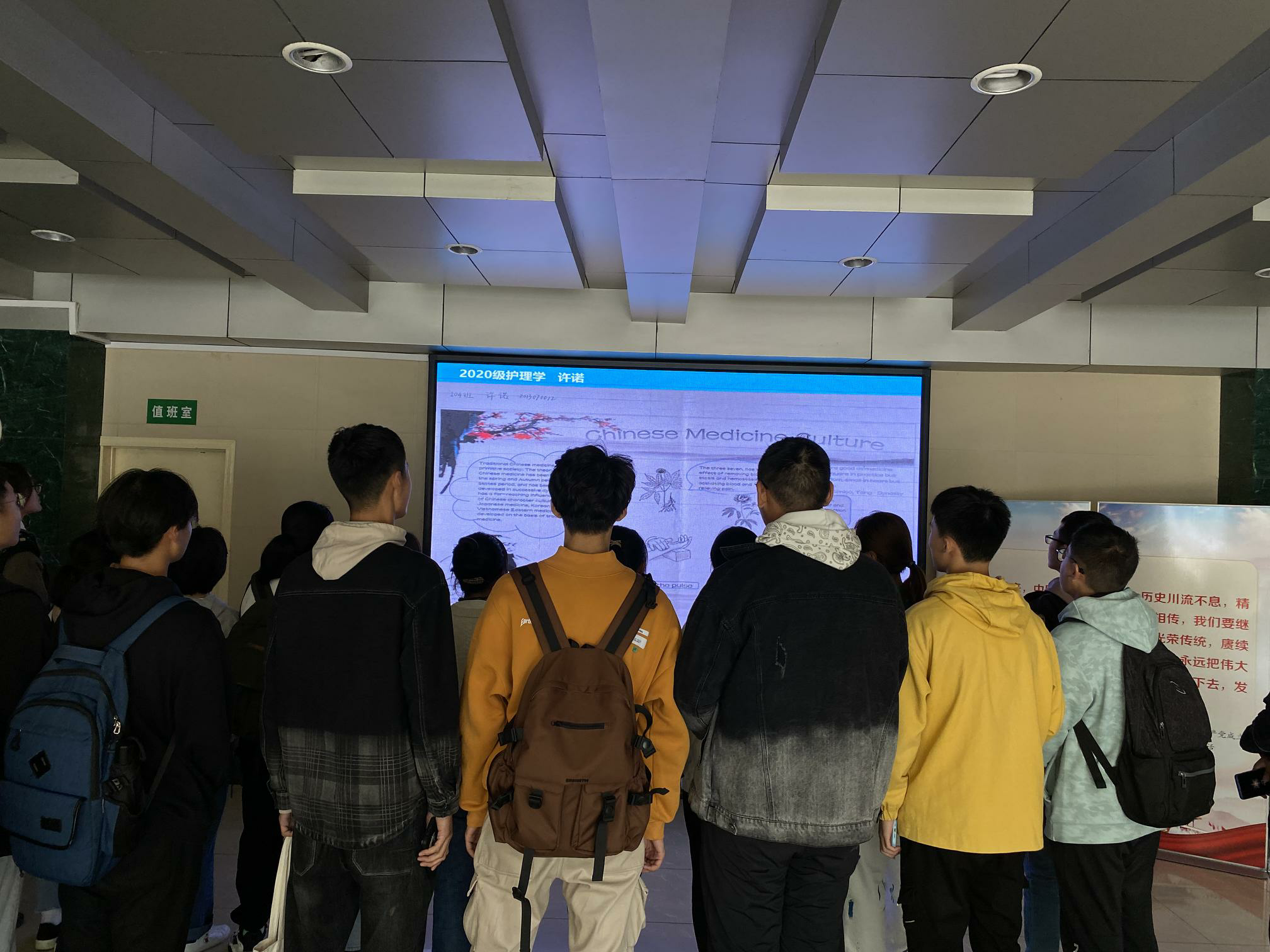 2021年10月11日至15日,外语系组织“英语话中国”创意海报展览。本次展览在人文医学性爱电影 一楼电子屏幕展出性爱电影 学生创作的英文海报。展览涵盖中医药文化、传统艺术文化、传统节日文化、太极文化、十二生肖传说、中国人物、中国饮食、中国建筑八大主题,用英语讲述中国故事,展现中国文化概貌。展览吸引了大量学生观看学习,有助于激发学生英语学习的兴趣和热情,培养学生沟通中外文化的志向。