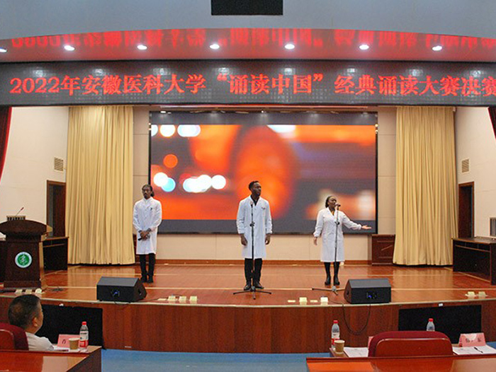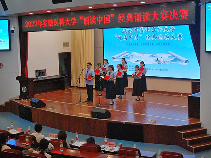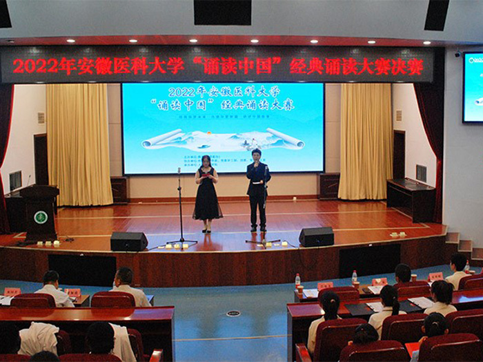 决赛现场,选手们准备充分,配合着精心制作的幻灯片,声情并茂地吟诵了意境优美的唐宋诗词、内涵丰富的经典名篇。朗诵或婉约、或豪迈,或深情款款、或慷概激昂,极富感染力和表演力,充分展示出选手们对节奏、语调等的精准把握,展现了安医学子良好的文化素养和精神风貌。