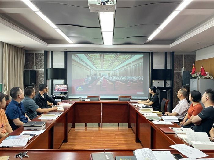 图为中心组成员观看学习视频《全面加强党的建设》