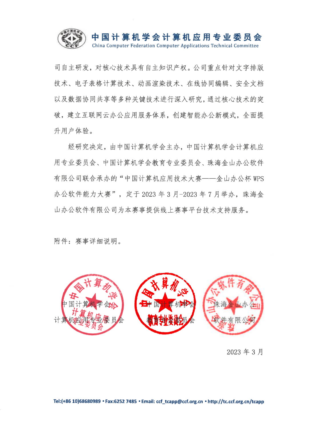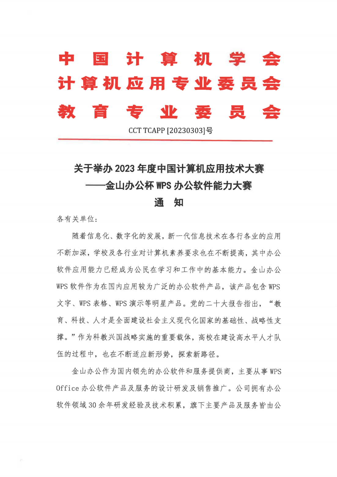 关于举办2023年度中国计算机应用技术大赛——金山办公杯WPS办公软件能力大赛通知