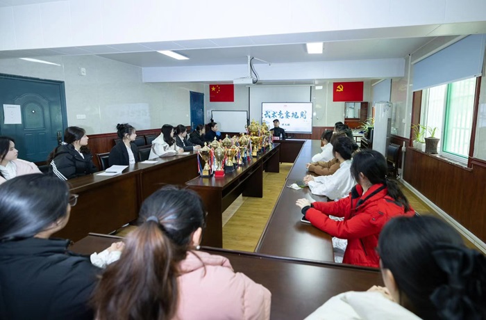 郑文鹏对最新武术竞赛规则进行了讲解,并结合自己近三十次执裁全国和国际武术太极拳比赛的经历,向同学们详细介绍了太极拳比赛裁判打分的关注点,哪些地方容易被扣分,比赛时如何选报项目等,并回答了同学们的提问。他结合自己带队获得全运会太极拳冠军的经历,对校队同学进行了太极拳和太极剑两场专题辅导,针对同学们在比赛中遇到的各种问题予以具体解答,并亲自示范动作,同时提出针对性的解决方法,同学们纷纷表示收获颇丰。