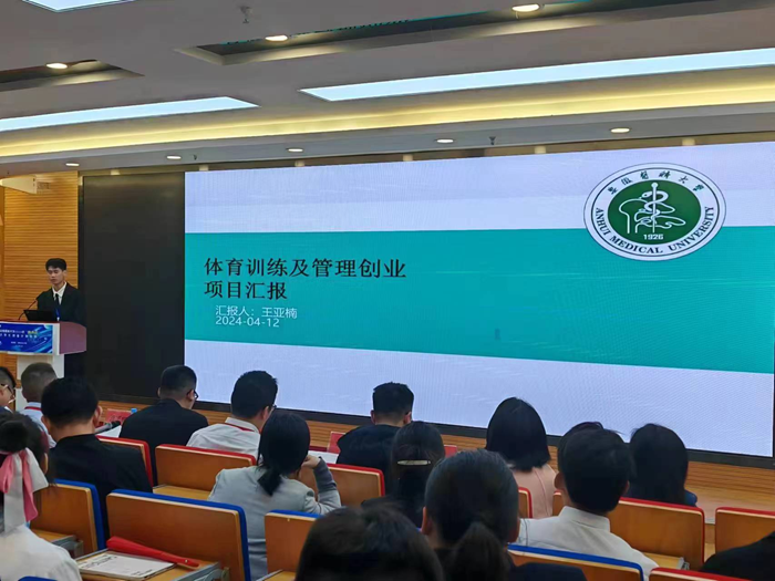 比赛中,王亚楠以体育与健康为主题,结合所在专业,向在场评委进行ppt讲解。他表示,项目共涵盖青少年体育培训、中青年职工赛事规划、老年保健运动以及损伤康复训练等多个方面,旨在响应国家全民健身计划,缓解社会中考体育压力,以满足大众对体育的需求,让更多人享受到体育的乐趣与益处。