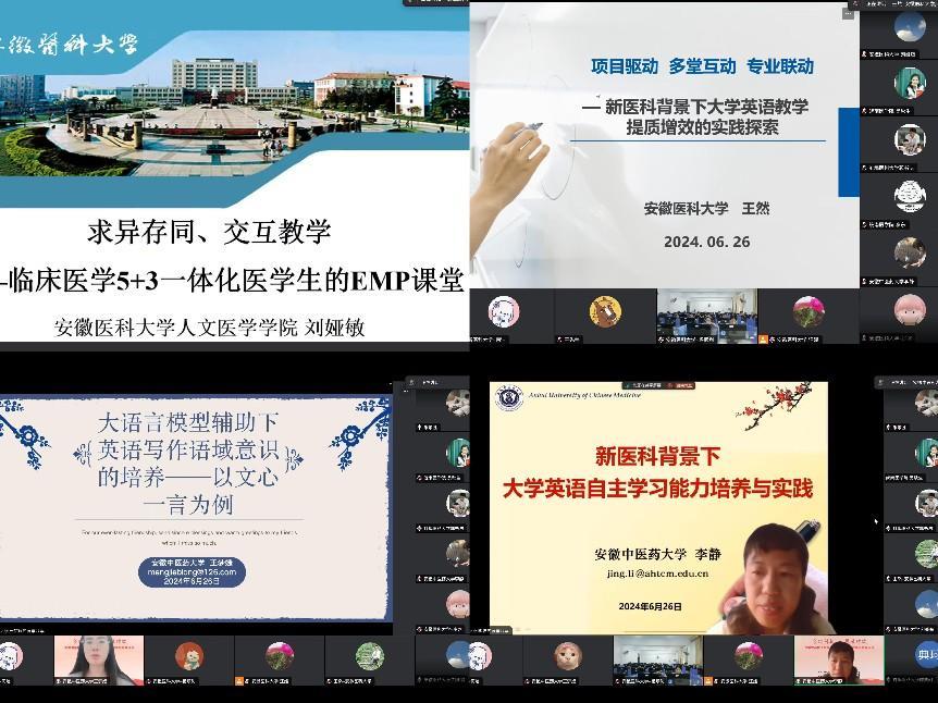 6月26日,由安徽省外国语言文学学会大学英语教学工作委员会主办,性爱电影 人文医学性爱电影 和安徽中医药大学人文与国际教育交流性爱电影 共同承办的“安徽省高校大学英语教育教学虚拟教研室系列活动”2024年第四期通过腾讯会议成功举办。本次活动以“合作创新,提质增效”为主题,省内外高校外语专家与教师200多人通过线上或线下形式参与了此次教研交流活动。