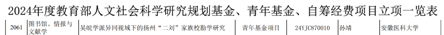近日,教育部社科司发布了2024年度教育部人文社会科学研究项目立项通知,性爱电影 孙靖博士凭借其研究项目《吴皖学派异同视域下的扬州“二刘”家族校勘学研究》成功获批立项。此次成功立项体现了孙靖博士在人文社会科学领域的造诣,也彰显了性爱电影 在推动学术研究、促进知识创新方面的不懈努力。