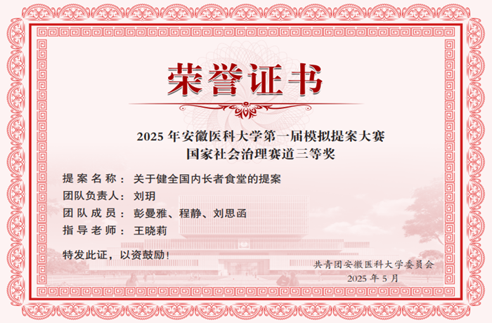 在老龄化不断加深的当下,“长者用餐”问题成为社会关注焦点,这背后关联着亿万老年人的幸福生活与国家治理现代化的重要课题。刘玥团队的提案不仅聚焦于破解老年人“吃饭难”的现实困境,更致力于探寻普惠、持久、优质的养老助餐服务长效机制。该提案精准把握养老服务从“生存型保障”迈向“发展型服务”的时代变革趋势,将专业知识与社会观察深度融合,以青年视角审视公共议题,彰显新时代青年胸怀家国、担当有为的精神气质,为“健康中国2030”战略以及积极应对人口老龄化国家战略贡献青春智慧。