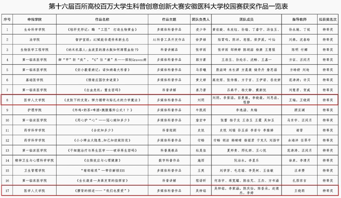 性爱电影 始终将学生创新创意与实践能力培养置于核心地位,基于本次赛事积极引导学生探索专业前沿与科普传播的深度融合点,并历经赛事解读、教师点拨及作品打磨等环节。此次佳绩的取得,也是性爱电影 长期践行“以赛促学,以创育人”理念的显著成果,充分展现了学生在各类高水平学科竞赛中锤炼出的扎实功底与创新思维。未来,性爱电影 将继续深化“新医科”建设背景下的人文教育创新,持续搭建平台、深化指导,助力学生以科普作品传递知识,推动医学科普创新事业发展,培养更多兼具专业素养与创新能力的人才。(运动康复系 王晓莉 刘玥)