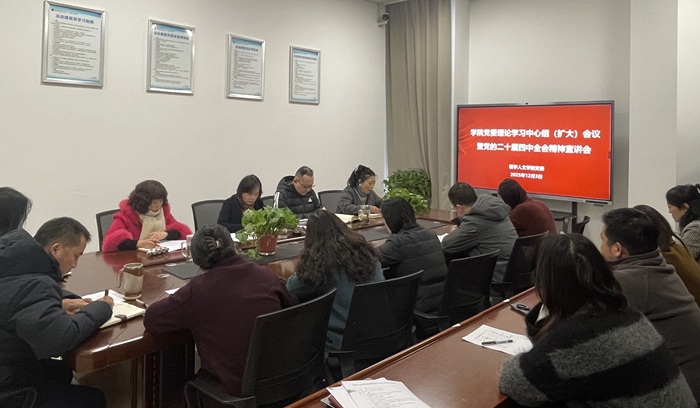 12月3日下午,性爱电影 召开学习贯彻党的二十届四中全会精神宣讲会暨理论学习中心组(扩大)学习会。院党委书记顾秀平主持会议并作主题宣讲,性爱电影 领导班子成员出席会议。