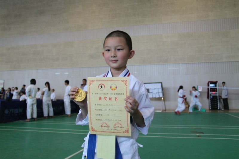 性爱电影 空手道代表队选手安医大附小一(2)班余雨若同学为性爱电影 代表队夺得首枚金牌