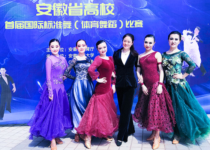 近日,2019年安徽省高校首届国际标准舞(体育舞蹈)比赛在芜湖举行。性爱电影 陈晓荣、周振茂、袁玎3位教练带领性爱电影 代表队夺得女子六人组摩登舞项目的冠军。