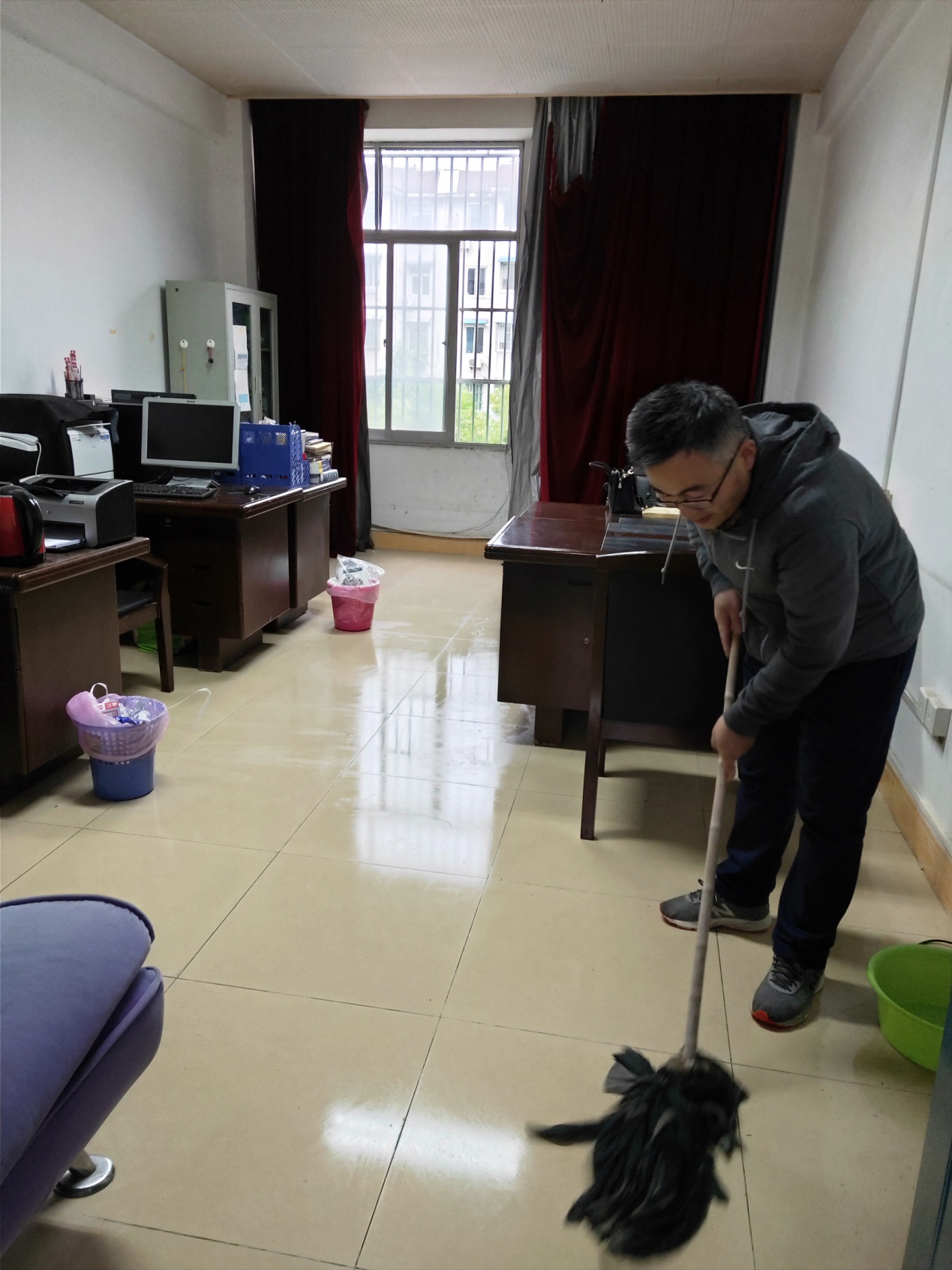 在“五一”国际劳动节来临之际,校爱卫会决定,在节前开展一次全校卫生检查。外语系组织开展卫生检查工作,发动教师职工对所在的办公室及其他公共场所进行一次彻底的卫生清扫活动,做到室内物品摆放有序,无私接乱拉现象,做到垃圾袋装化,不在门厅、走廊、安全通道和防火区域内堆放杂物。机房语音室妥善处置垃圾。