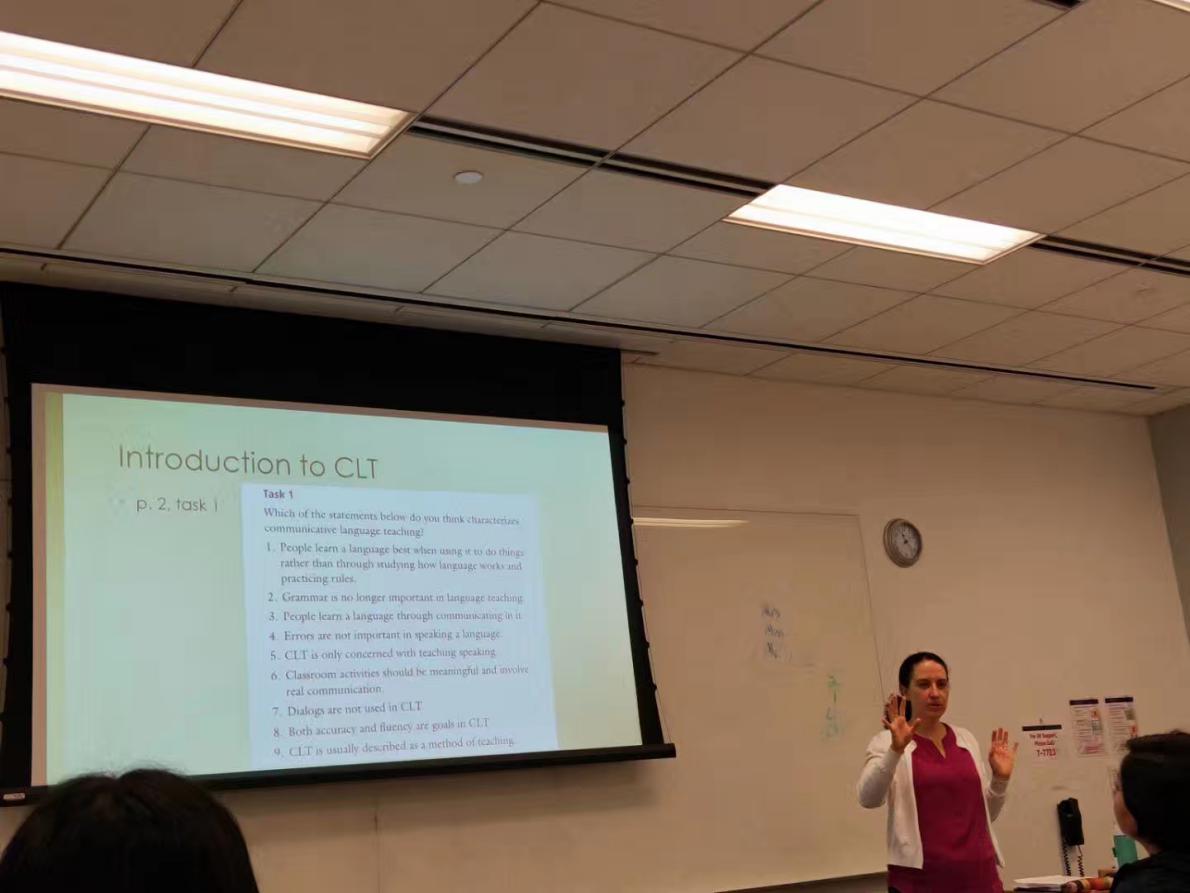 Dr.Heather Weger教授的课程系统讲授了交际教学法(CLT)的历史发展与现状、重点培养能力、具体指导原则、课堂活动、师生角色定位等方面内容。