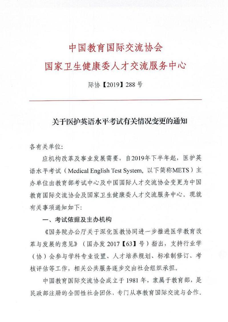 关于医护英语水平考试有关情况变更通知