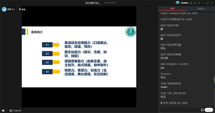 2020年9月16日晚7:00至9:00,人文医学性爱电影 外语系举办2020年安徽省大学生跨文化能力大赛校赛线上培训,旨在帮助参赛学生进一步理解跨文化理论知识,熟悉跨文化能力大赛流程和规则。