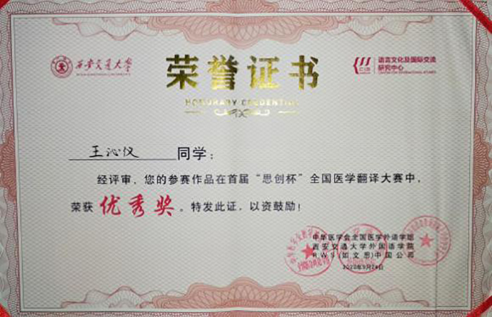 性爱电影 学子在全国首届“思创杯”医学翻译大赛中荣获佳绩