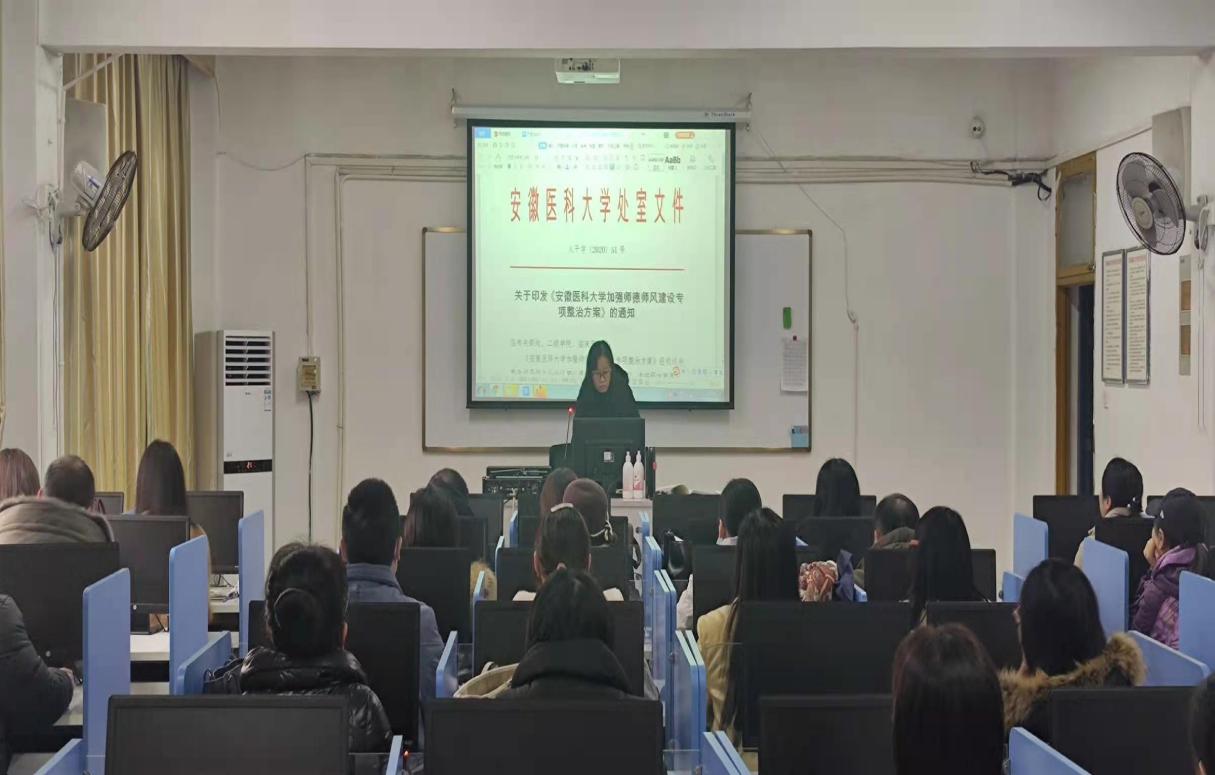 2020年12月9日下午,外语系召集全体教职员工在第五语音室召开加强师德师风建设专项整治工作会议,主要学习了性爱电影 《性爱电影 加强师德师风建设专项整治方案》、习近平总书记对教师队伍建设特别是关于师德师风的重要论述、《关于加强和改进新时代师德师风建设的意见》、《关于全面深化新时代教师队伍建设改革的意见》、《教育部关于进一步规范高校科研行为的意见》、《关于建立健全高校师德建设长效机制的意见》和《高等学校预防和处理学术不端行为办法》精神。之后,要求所有教职员工重点按照潜心教书育人、坚持言行雅正、遵守学术规范等方面进行深刻剖析,并填写了《个人“师德师风问题”自查自纠表》(附件二),组织全体教师和教辅人员签署《“师德师风”承诺书》(附件三),同时提交电子档和纸质版备案。