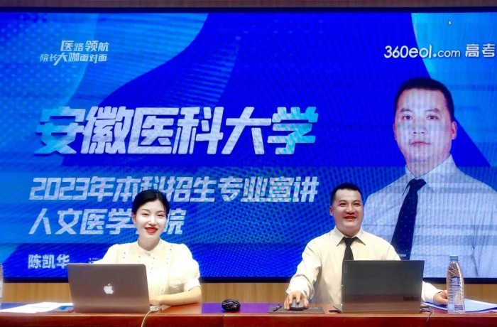 奔赴各地,线下宣讲。6月26日-29日,学院安排运动康复系教师曹建军、李萍等人组成宣传队伍奔赴合肥一六八中学、阜阳市第一中学、太和中学等六所省级示范高中开展招生宣传工作,并与安徽省太和中学、安徽省太和第一中学、阜阳市第三中学共建优质生源基地签约授牌。咨询会现场,教师宣传员布置宣传条幅、发放宣传彩页,让考生及家长现场扫码观看学校招生宣传视频、招生简章等,并就考生和家长们关心的平行志愿录取规则、专业就业前景、考研保研情况、转专业条件等提问进行耐心细致解答,给予针对性志愿填报建议。