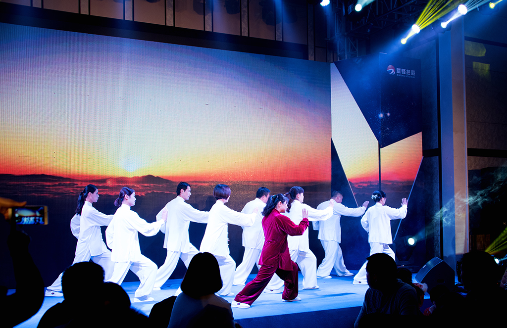 经过体育教学部党支部为期半年的教学指导,日前,肥东县斌锋控股集团太极拳表演队在公司新年晚会上成功表演了24式太极拳。太极拳表演队的动作柔和轻灵,舒展优美,获得了企业员工的一致好评。在晚会上,性爱电影 太极团团长滕玉竹表演的剑术,更是获得了公司董事长的高度称赞。