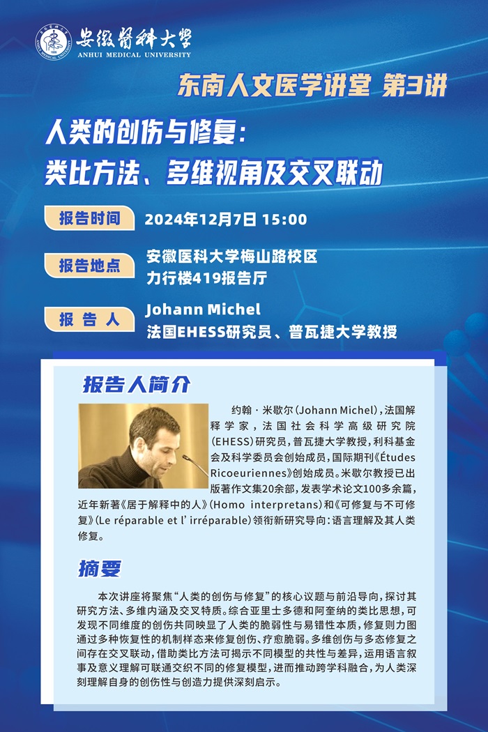 【东南人文医学讲堂第3讲】人类的创伤与修复:类比方法、多维视角及交叉联动(Johann Michel)