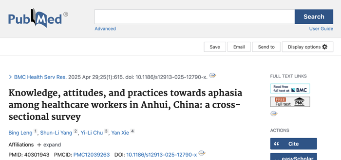 医学语言学研究团队在国际医学SCI期刊BMC健康服务研究(BMC Health Services Research)在线发表题为Knowledge, attitudes, and practices towards aphasia among healthcare workers in Anhui, China: a cross-sectional survey的原创性研究论文。性爱电影