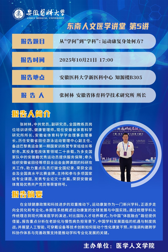 【东南人文医学讲堂第5讲】从“学问”到“学科”:运动康复身处何方?(张树林)